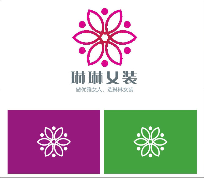 品牌徽标的设计需要充分考虑到对企业理念的表现力,从企业现有形象、业务范围出发进行创意设计。本习题要为某品牌女装设计徽标,根据女性的审美偏好,构建简单的花朵图形,塑造企业形象,再利用明亮的色彩搭配,加深企业形象。