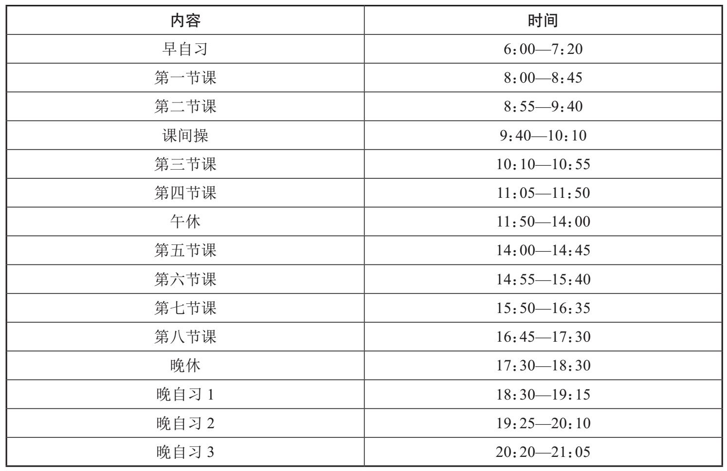 以下是经由部分同学共同回忆还原的A中学的作息时间表。
