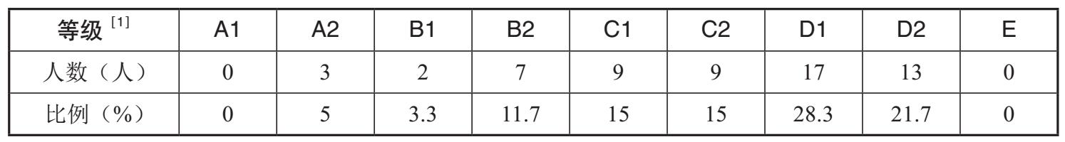 [1] D市中考成绩等级按占全市排名计算:A1,第1~3 000名;A2,第3 001~6 000名;B1,第6 001~9 000名;B2,第9 001~12 000名;C1,第12 001~16 000名;C2,第16 001~20 000名;D1,第20 001~25 000名;D2,第25 001~30 000名;E,30 000名以下。