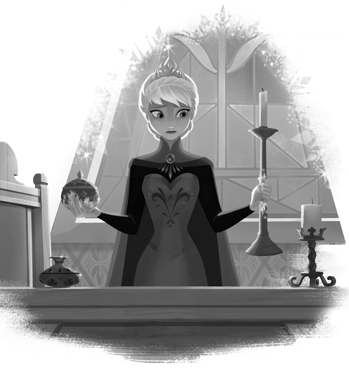 Just as his thoughts began to run through a series of alternate plans, he realized a hush had fallen over the crowd. Surprised at the sudden silence, Hans looked up. His breath hitched in his throat. The future queen of Arendelle had taken her spot on the raised platform at the front of the chapel. She stood, staring blankly out at the crowd, her eyes focused on some point only she could see. Anna stood next to her, her gaze jumping from one person to the other as though she couldn't soak up the faces fast enough.