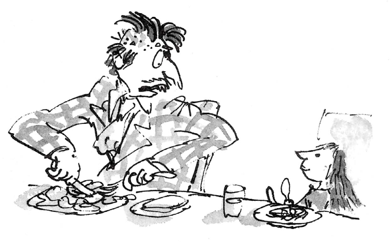 吃早饭的时候玛蒂尔达对他说:“你必须想办法把你脑门上那些东西弄掉,爸爸。看起来像是棕色的小虫子在你头上到处乱爬。人们会以为你长了虱子的。”