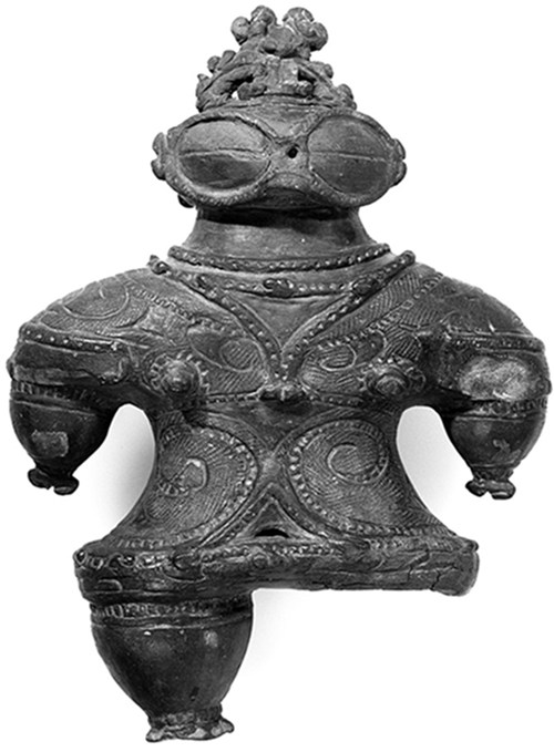 例如,在近畿一带的弥生遗址中大量出土的铜铎,形似梵钟而扁平,顶端有半圆形纽,两面雕刻人物、禽兽、房屋、花草等图案。这种铜器用途不明,在中国和朝鲜罕见出土,其祖型可能是编钟或马铃之类,但在日本大概是用于农耕祭祀的。如上所述,铜铎的源头或许可以追溯到中国,但在日本的仿制过程中器形和用途均发生变化,这是艺术在流播过程中出现变异的极好例证。