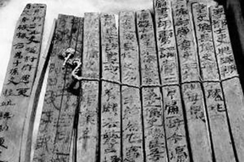 20世纪70年代,湖北省的云梦睡虎地发掘出一系列秦墓,其中从11号墓出土竹简1100余枚,经过专家们的分门别类,内容包括《编年记》《语书》《秦律十八种》《效律》《秦律杂抄》《法律问答》《封诊式》《为吏之道》和《日书》共9种,墓葬年代推为秦始皇三十年(公元前217年)