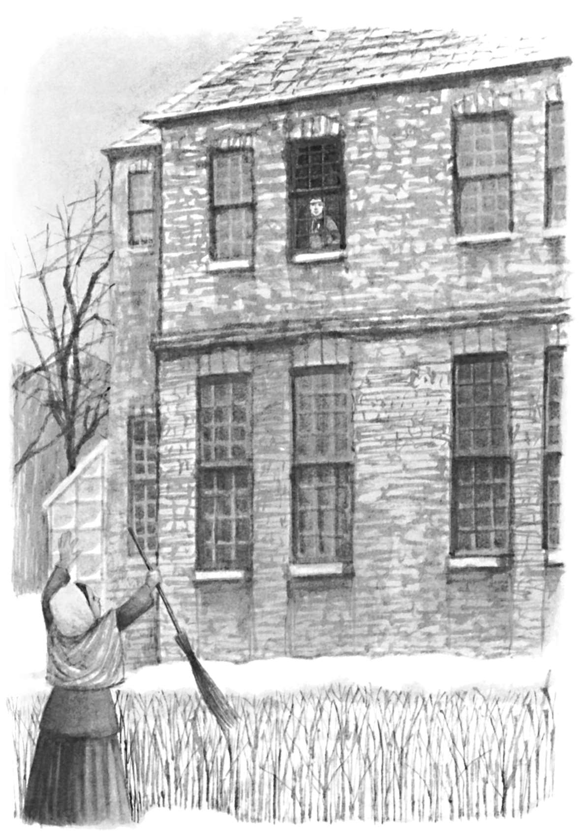“他在那儿呢,”乔思忖道,“可怜的人啊!孤孤单单,又是这么个阴沉的日子。怎么能这样儿!我扔个雪球上去,唤他露面,安慰安慰他。”