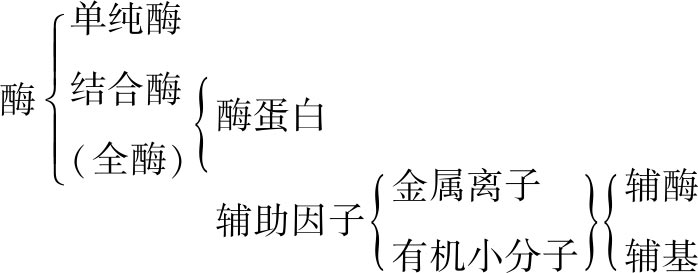 根据酶的组成成分,又可将酶分为单纯酶和结合酶两类。