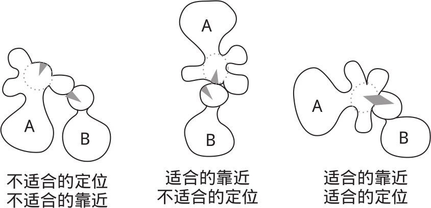 酶在反应中将诸底物分子“吸引”到酶的活性中心,使它们相互接近并形成有利于反应的正确定向关系。在两个以上底物参加的反应中,底物之间必须以正确的方向相互碰撞,才有可能发生反应。这种邻近效应与定向排列实际上是将分子间的反应变成类似于分子内的反应,从而降低反应的活化能,提高反应速度。(图4-4)