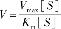 V max 指该酶促反应的最大速度,[ S ]为底物浓度, K m 是米氏常数, V 是在某一底物浓度时相应的反应速度。当底物浓度很低时,[ S ]< K m ,反应速度与底物浓度呈正比。当底物浓度很高时,[ S ]> K m ,反应速度达最大速度,底物浓度再增高也不影响反应速度。