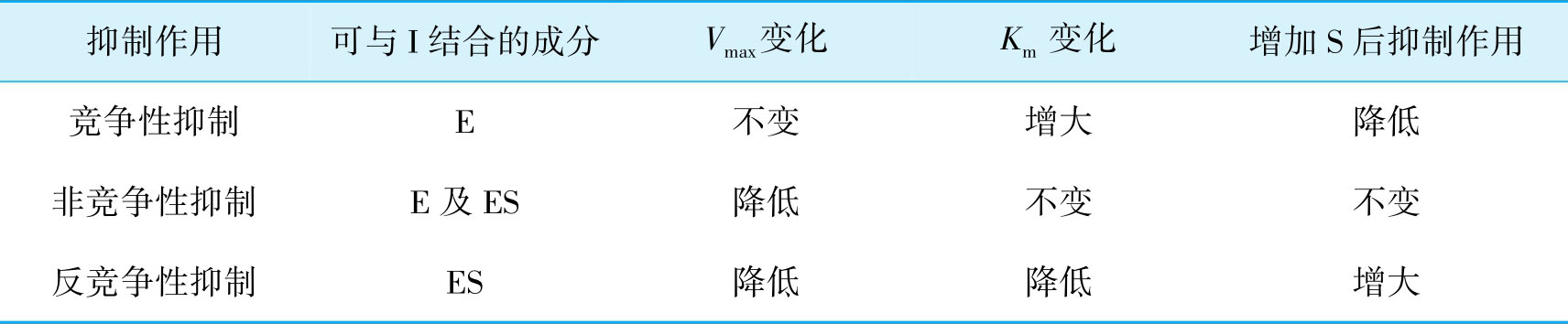凡能使酶的活性下降而不引起酶蛋白变性的物质统称为酶的抑制剂(Inhibitor,I)。抑制剂多与酶的活性中心内、外必需基团结合,从而抑制酶的催化活性,通常对酶有选择性。除去抑制剂后酶的活性可以恢复。使酶变性失活的因素如强酸、强碱、高温等,其作用对酶没有选择性,不属于抑制剂。根据抑制剂与酶结合的紧密程度不同,把酶的抑制作用分为不可逆性抑制和可逆性抑制两类。