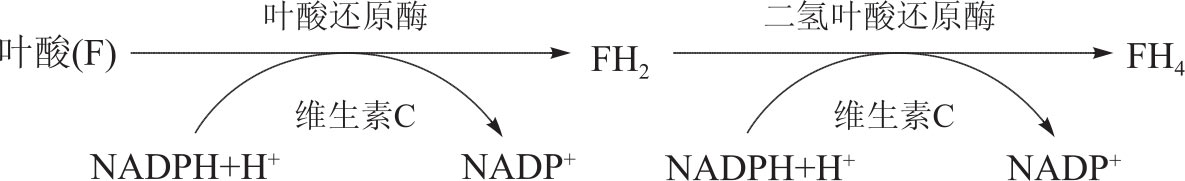 叶酸又称维生素B 11 ,在植物绿叶中含量相当丰富,因此而得名。它主要由蝶酸和谷氨酸结合而成,为淡黄色结晶状粉末,无味无臭,可溶于水,对酸和碱敏感。绿叶蔬菜、动物肝脏及肾脏、酵母、水果和蛋类等都是叶酸的主要食物来源。进入人体的叶酸在小肠和肝脏等组织中被二氢叶酸还原酶还原为二氢叶酸(FH 2 ),二氢叶酸再还原为四氢叶酸(FH 4 )而发挥作用。