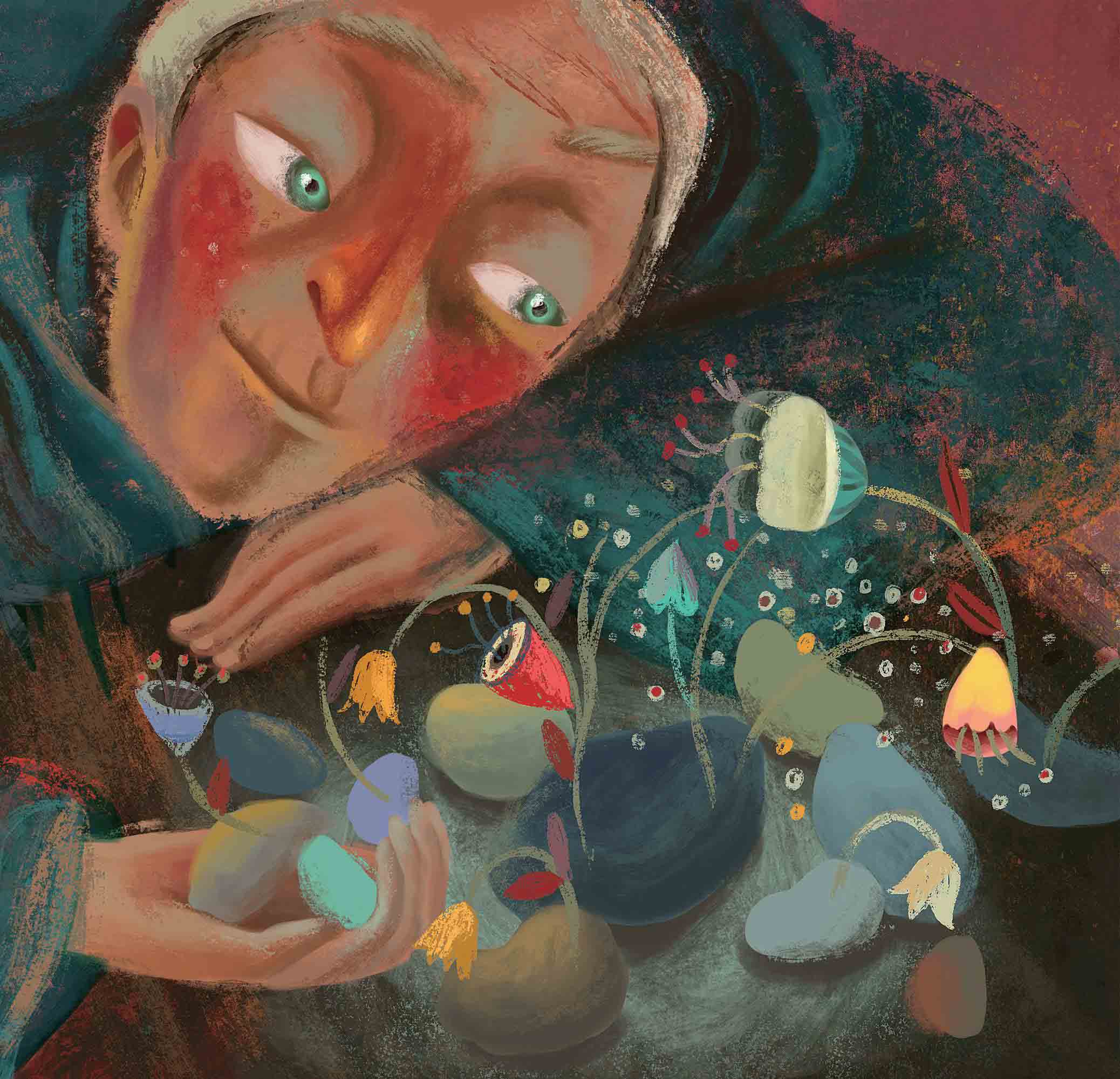 从此她们约好每天黄昏见面。这时间正是放学和晚饭的间隙,是土豆的自由时光,没有人会过问她去哪里。蓝婆慢慢地给土豆讲水妖的故事。