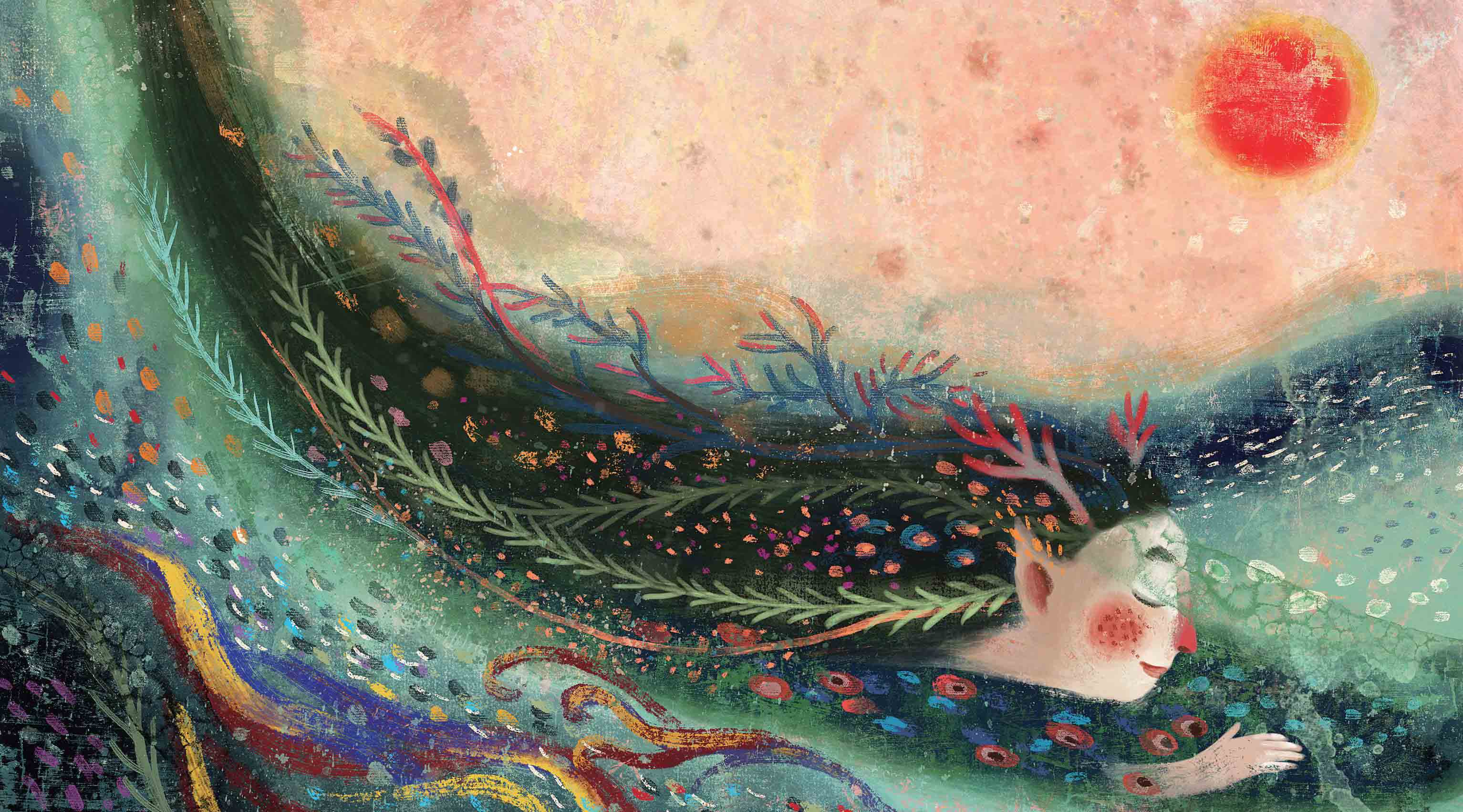 “我在水里了啊。”喀喀莎微笑着说,她弯腰捞起一把碧绿的水草,“这就是我本来的模样嘛。”