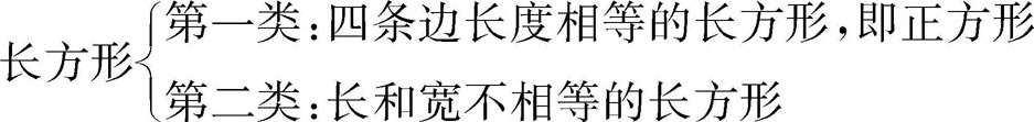 无论是哪一类,都属于长方形这一大类中。类似于此符合种属关系的概念还有:长方形与平行四边形、梯形与平行四边形、四边形与梯形、长方体与正方体、偶数与4的倍数、数与分数等等。