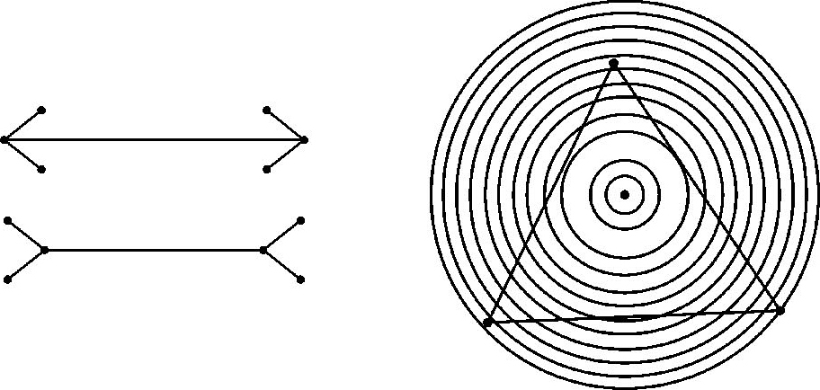 问题一: 观察两组线段的长度(如图2-1所示),判断哪一根长,判断圆环中的图形是否是三角形,如何判定?