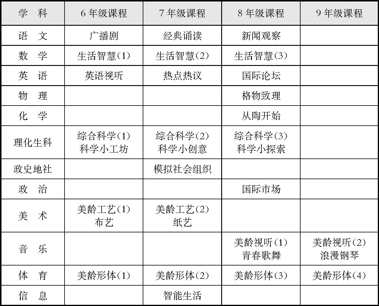 表2-3 上海市第三女子初级中学领域类教育课程一览表