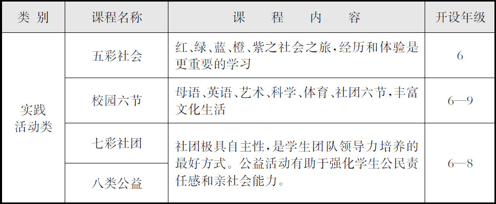 表2-4 上海市第三女子初级中学实践、活动类教育课程一览表