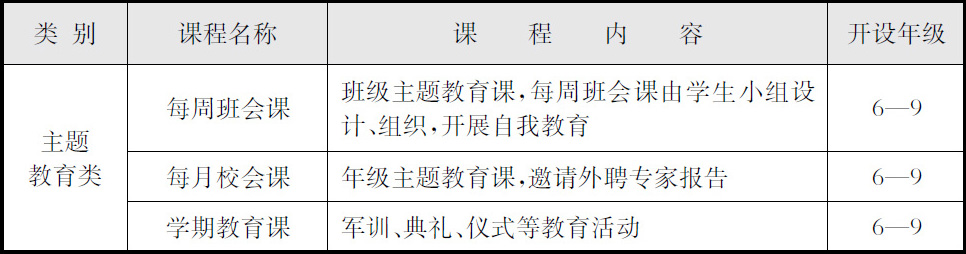 表2-5 上海市第三女子初级中学主题教育类课程一览表