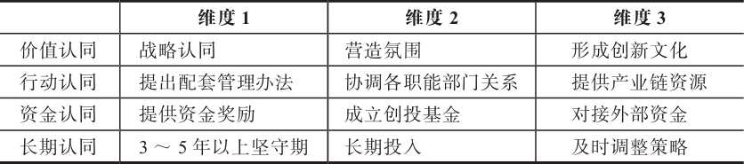 内创业是“一把手”工程,推动内创业必须得到一把手认同,但这种认同绝非口头说说,而是包括四个方面:价值认同、行动认同、资金认同、长期认同。