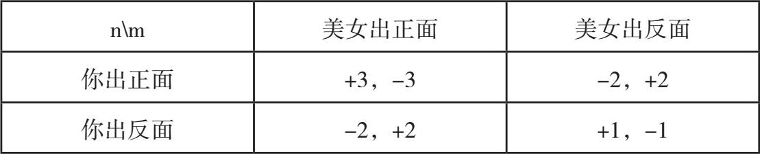 我们来分析一下,按照游戏规则,你和美女每局可能出现的收益情况如下表所示: