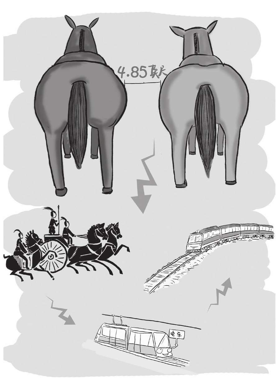 人们又问:“英国人又为什么要用这个标准呢?”原来英国的铁路是由建电车的人所设计的,而4.85英尺是电车轨道所用的标准。