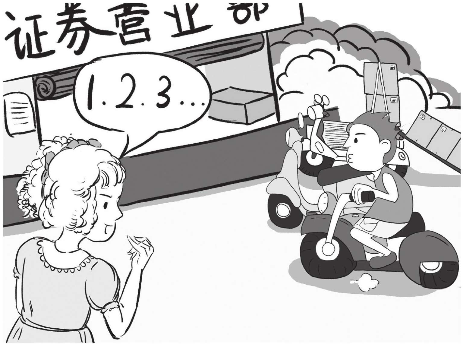 在赚钱方面,小斯考吉选择了投资股票。很多投资股票的人,不是盯着电视就是盯着报纸,因为这些媒体都对股市做直接报道。然而,小斯考吉并没有选择这种直接的途径,而是根据证券营业部门口的摩托车数量决定该股是抛售还是买进。