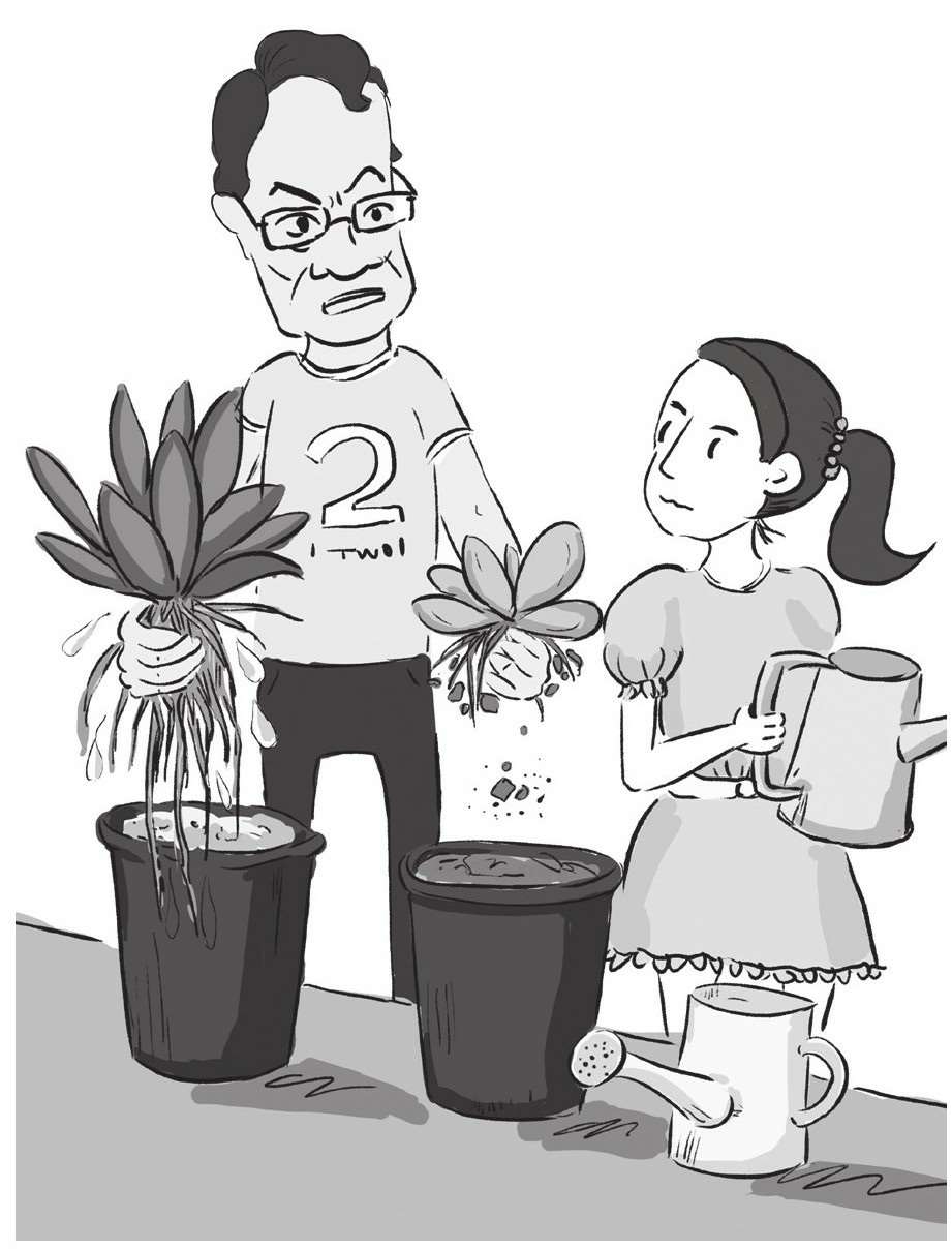 于是,刘墉将女儿浇的花和自己浇的花都连根拔了起来。女儿一看,脸就红了,原来爸爸浇的水都浸透到根上,而自己浇的水只是将表面的土淋湿了。