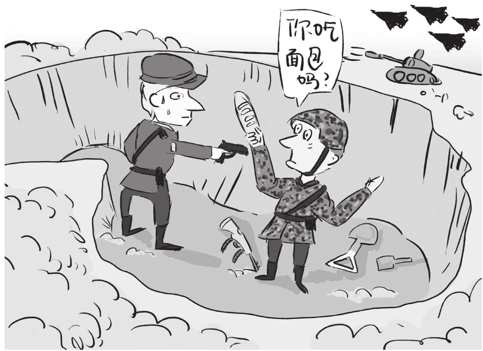 这个德国兵为什么这么容易就被一块面包打动呢?其实,人的心理是很微妙的,在得到别人的好处或好意后,就想要回报对方。虽然德国兵从对手那里得到的只是一块面包,或者他根本没有想要那块面包,但是他感受到了对方对他的一种善意。即使这善意中包含着一种恳求,但这毕竟是一种善意,是很自然地表达出来的,在一瞬间打动了他。他在心里觉得,无论如何不能把一个对自己好的人当俘虏抓回去,更别说要了这个人的命。