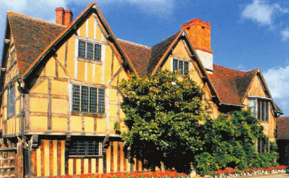 图为莎士比亚出生时的家,位于英格兰沃里克郡斯特拉特福。为纪念这位伟大的作家,在莎士比亚的故居里至今保存着当时的家具,从世界各地慕名前来的参观者络绎不绝。