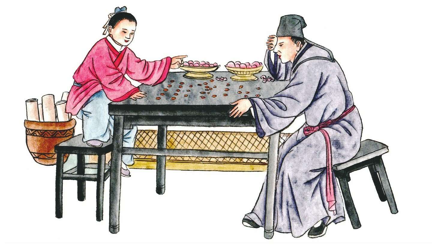 王阳明小时候对兵法颇有兴趣,爱玩军事游戏,常用果核与客人摆兵阵,乐此不疲。