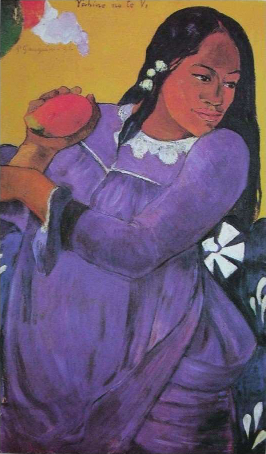 《月亮与六便士》里的主人公斯特里克兰德的人生经历与法国后印象派画家高更有很多相似之处:都曾是受人尊重的证券经纪人,有妻子儿女,为了追求艺术自由而离家出走,过着贫困的生活;都在塔希提岛生活并创作,最后都病死在南太平洋群岛。了解了高更,便能更好地理解小说中的人物形象。图为高更自画像和他创作于塔希提岛的名画《持杧果的少女》。