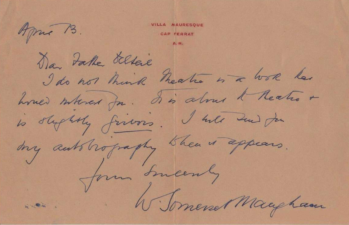 威廉·萨默塞特·毛姆,英国小说家、剧作家。一生中创作了大量的戏剧和小说,多部作品被搬上舞台和银幕,持续受到各国读者和观众的欢迎,这为他赢得了很高的声誉。毛姆1874年1月25日出生在巴黎。1892—1897年在伦敦学医,并取得外科医师资格。1897年发表第一部长篇小说《兰贝斯的丽莎》。第一次世界大战期间,毛姆赴法国参加战地急救队,不久进入英国情报部。1915年完成长篇小说《人性的枷锁》。1916年,毛姆去南太平洋旅行,此后多次到远东。1919年,长篇小说《月亮与六便士》问世。1920年到中国,后来写了游记《在中国的屏风上》。以后又去了拉丁美洲与印度。1928年定居法国地中海滨。第二次世界大战时曾去英、美宣传联合抗德,并写了长篇小说《刀锋》。1948年以16世纪西班牙为背景的长篇小说《卡特琳娜——一段罗曼史》出版,此外又发表了回忆录与一系列文艺批评作品。1954年,英国女王授予其“荣誉侍从”的称号,他成为皇家文学会的会员。1965年12月,于法国病逝。
