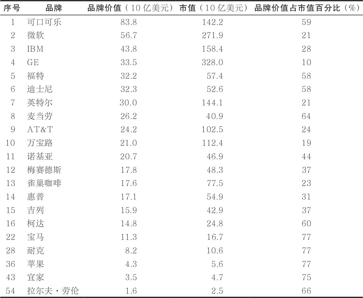表1-4 泛品牌咨询公司衡量的全球性品牌的价值