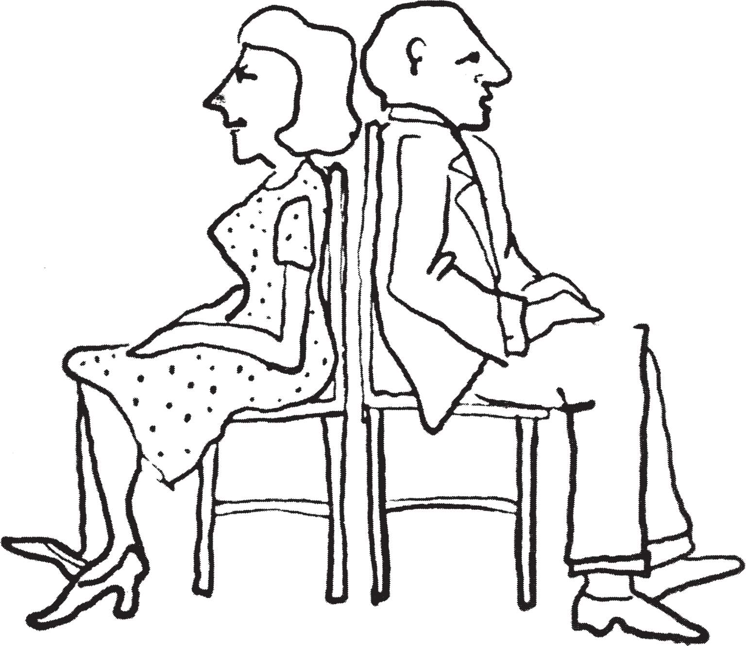 给这个练习再加一个条件:把你们的椅子分开四十厘米左右,仍然保持背对背的状态。注意一下你们交流过程中的变化。你有可能会根本感觉不到对方的存在了。