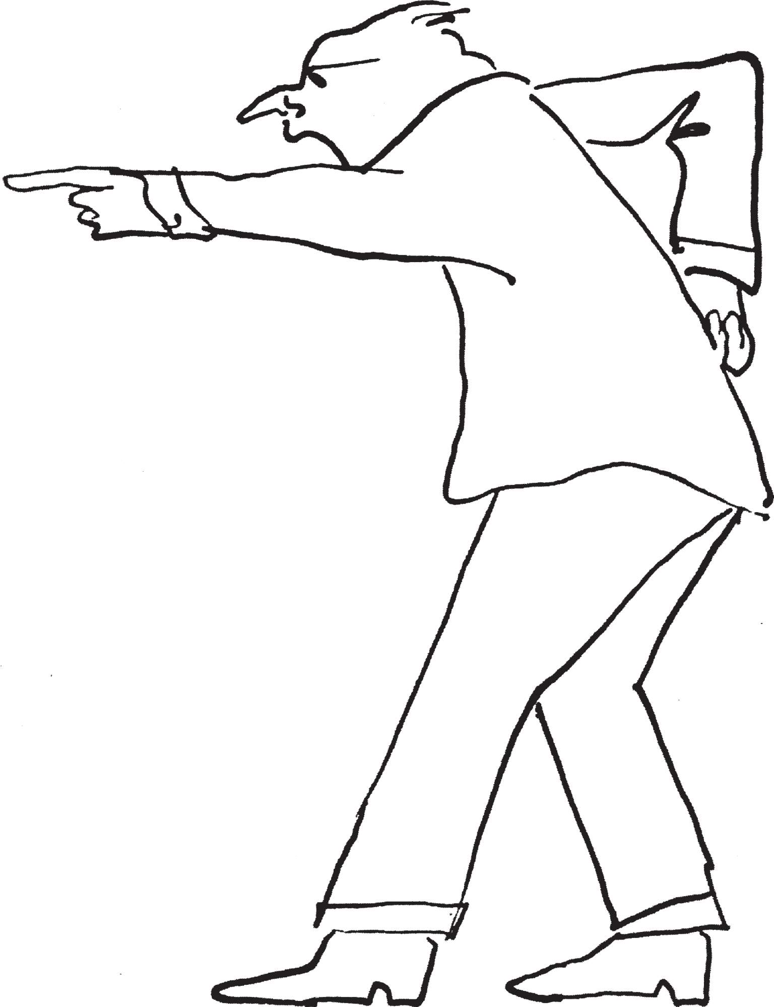 想象你站在那里,一只手放在腰上,另一只手连带着手臂直指着。在你大声叫嚷、呼喊名字、批评天下所有的事物时,你的脸抖动着,嘴唇卷曲着。你指责的姿势看起来是下页图中的样子。