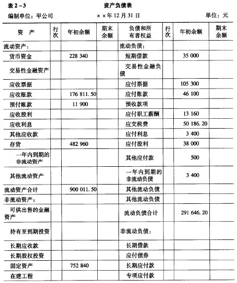 根据上述所给资料,依据新会计准则规定可以编制该公司××年12月31日的资产负债表,见表2-3: