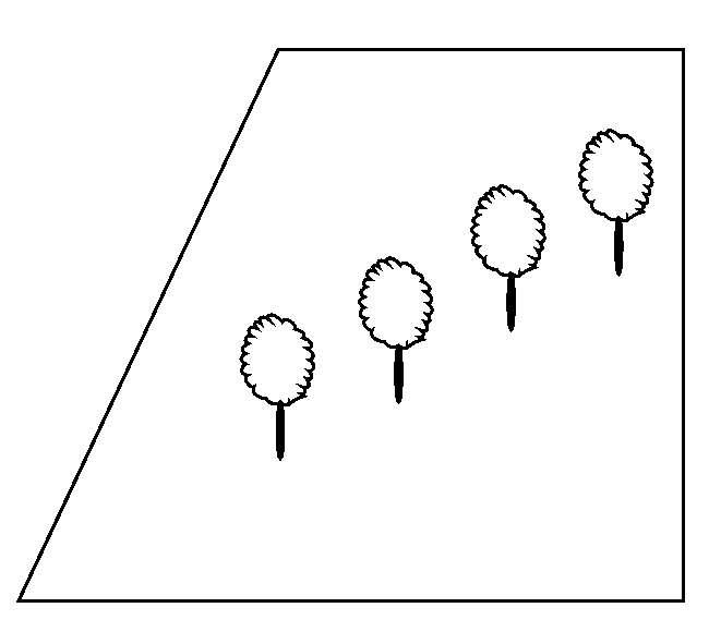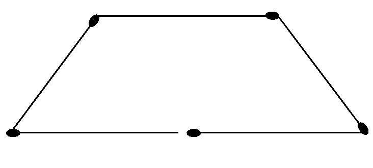 一块如图2-15般的梯形土地,其上种植了四棵樱桃树。若将此土地平均分给四个人,且每块地上均需有一棵树。请问应如何分割?