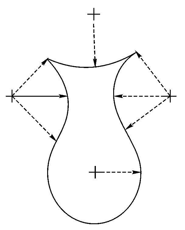 一个十字形的铁片上有8个圆孔和4个方孔(图2-7),怎样将铁片分隔成4个尺寸相同的图形,同时每个图形中要有2个圆孔和1个方孔?