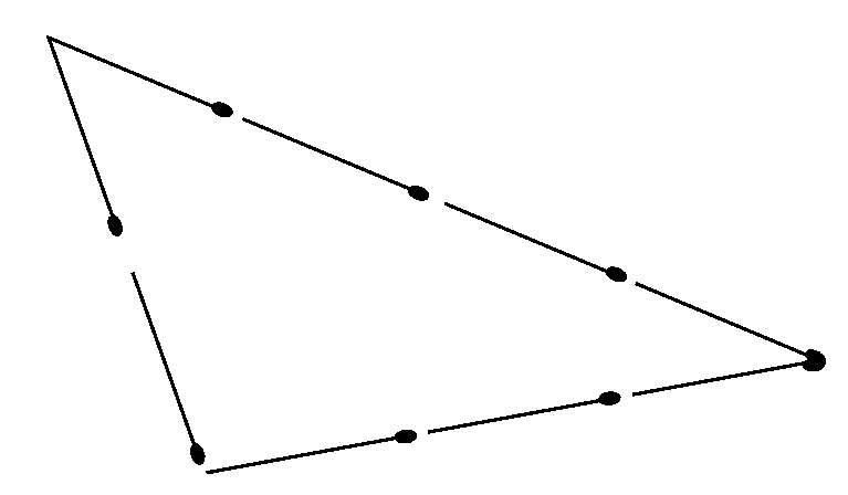 如图2-13所示,把10个煤球排列成一个正三角形,若要动三个最短距离的煤球,把三角形的方向整个倾倒过来,该如何移动呢?