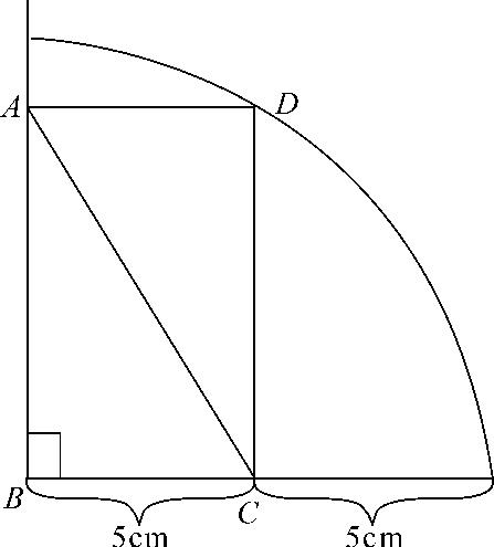 在四分之一圆内画一个如图2-9所示的长方形,其对角线AC的长度为多少?