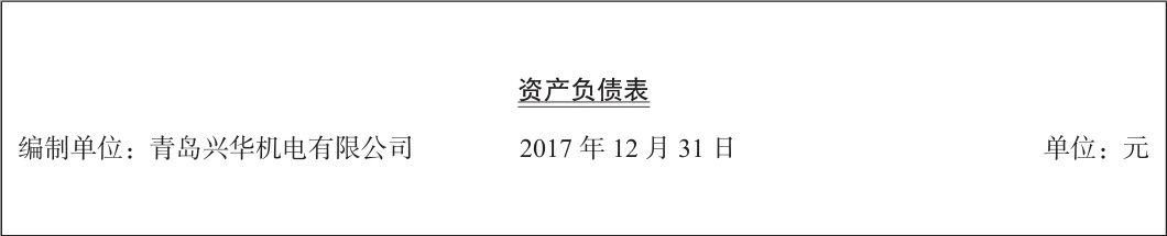 反映青岛兴华机电有限公司2017年12月31日财务状况的资产负债表表头部分如下所示。