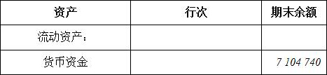 货币资金项目=“库存现金”+“银行存款”+“其他货币资金”=26 480+6 978 260+100 000=7 104 740(元)