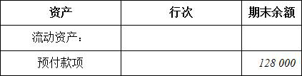 预付账款项目=借方余额的“预付账款”-“坏账准备”+借方余额的“应付账款”=63 000+27 000-3 400+41 400=128 000(元)