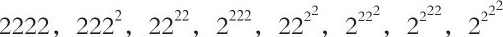 【题目】把上面的题目扩展一下,我们来看看4个2的情形。不使用运算符号,把4个2摆成尽可能大的数,该怎么摆放呢?