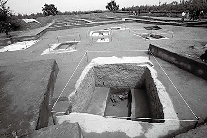 姜寨遗址的年代约为六千五百年前。这是一整个居住村落,全部发掘出土,所以不仅可以了解个别居住形式,还能告诉我们那个时代的社会组织和社会生活原型。