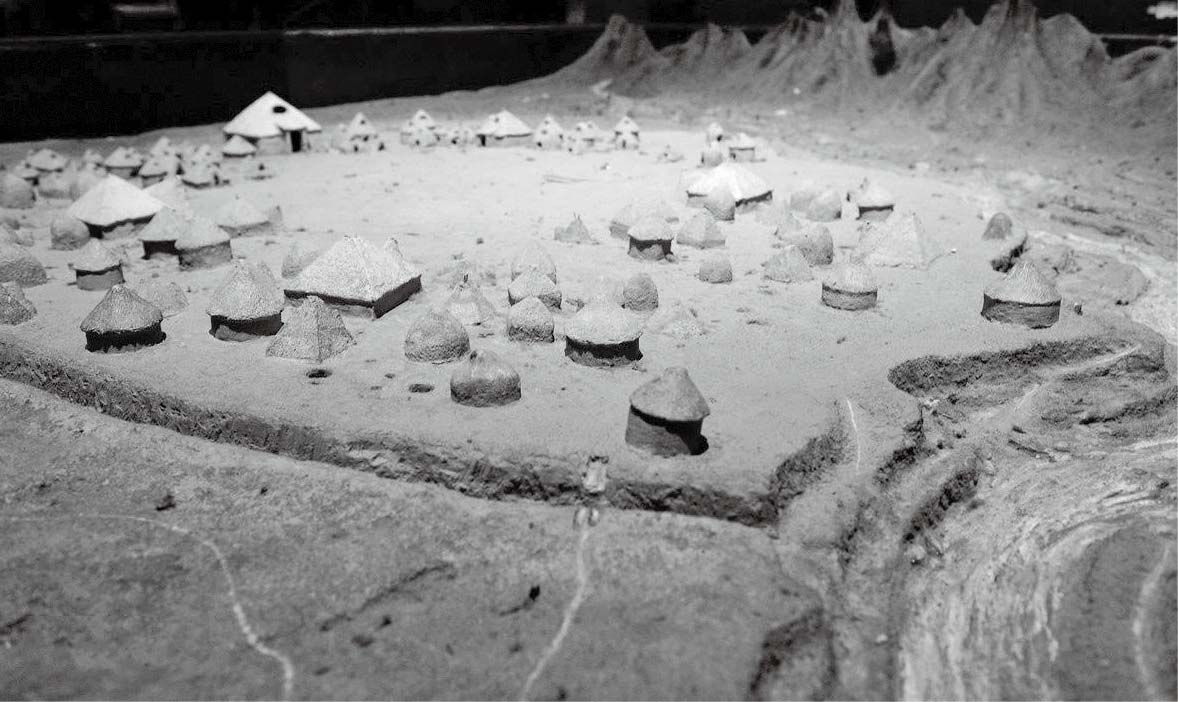 村落里有不少房子,房子有大有小,坐落于不同的方向。房屋群的外围有一道壕沟,这是为了防止野兽侵袭的。壕沟可以防大部分动物,却防不了一种特别的动物——人,要防人就得筑城墙。所以如果发现城墙取代壕沟,围在村落外,通常也就表示住民防范的主要威胁从野兽转变为其他的人类。