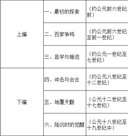 第六篇《陆沉时的觉醒》。从十七世纪开始,欧洲资本主义势力侵入,破坏了长期反复的整个次大陆的社会和思想结构,又一次更严重地打乱了它本身的发展。外来势力先在十八世纪中(一七六一)得到实际统治权,到十九世纪中叶(一八五七)完全结束了封建国家的独立史。新统治者既不是土生土长的,又不是外来而在本地定居的,而是远在海外相隔万里完全与本地无关的资本主义殖民主义的英国。从此外国语英语成为文化教育语言,使受教育者和未受教育者之间有了更大分裂,统一的思想不能形成。
