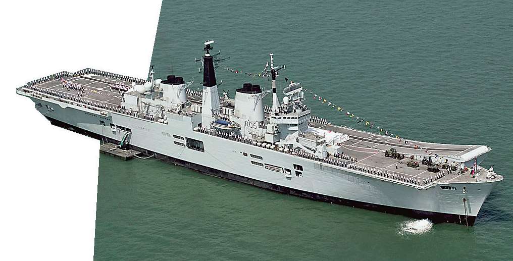 英国无敌级航母系列共有3艘,即“无敌”号、“卓越”号和“皇家方舟”号(R07)。无敌级航母长210米,宽36米,吃水7.5米,排水量22 000吨,动力装置为4台TM—3B型燃气涡轮机,总功率10万马力,航速28节,可搭载22架“鹞式”战斗机和直升机。无敌级航母最大的特点是应用了滑跃跑道,长约167米,宽12米。“无敌”号和“卓越”号的上翘角度为7度,“皇家方舟”号为12度。“海鹞”舰载机通过滑跃甲板起飞,在滑跑距离不变的情况下可使飞机载重增加20%,载重量不变的情况下可使滑跑距离减少60%。2005年8月,英国皇家海军旗舰—“无敌”号航母提前退役。