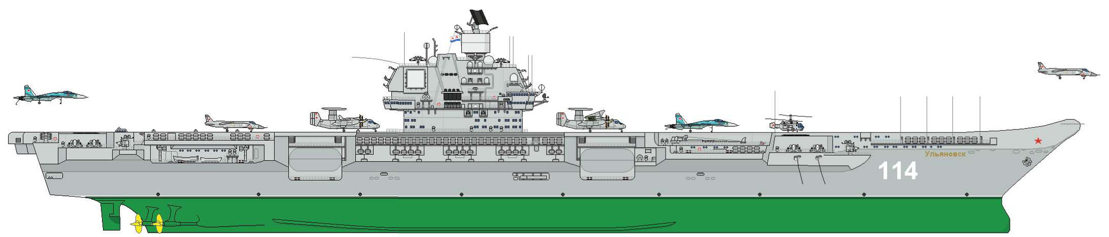 图53 苏联“乌里扬诺夫斯克”号示意图(侧面)