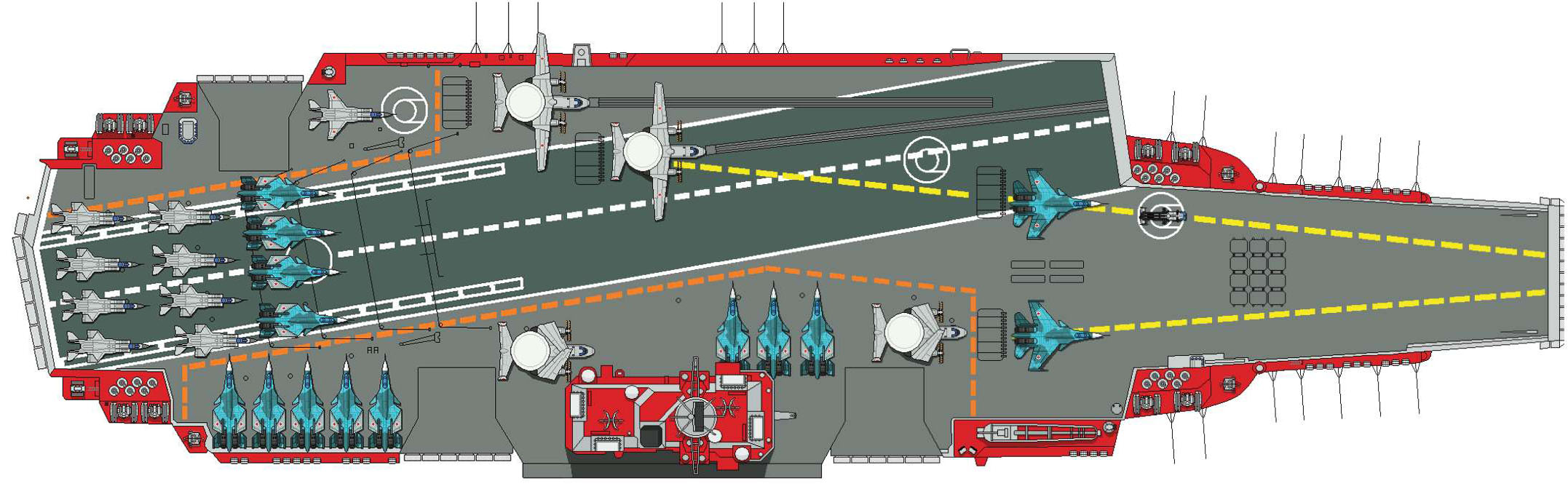 图54 苏联“乌里扬诺夫斯克”号示意图(俯视)