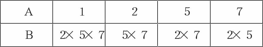 为了分别求出A和B,我们先把70进行分解质因数(如下)。