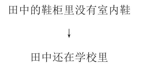 在上述推断中,田中的鞋柜和田中的室内鞋是一一对应的(译者注:为了维护学校的清洁,日本有进学校换室内鞋的传统),且田中的室内鞋和田中自己也是一一对应的,因此我们能根据田中的鞋柜没有室内鞋,从而得出田中还在学校里的结论(当然,如果田中已经回家,但是有人恶作剧拿走了他的鞋子,那就另当别论了)。综上所述,在逻辑推理中,单射关系是非常重要的。